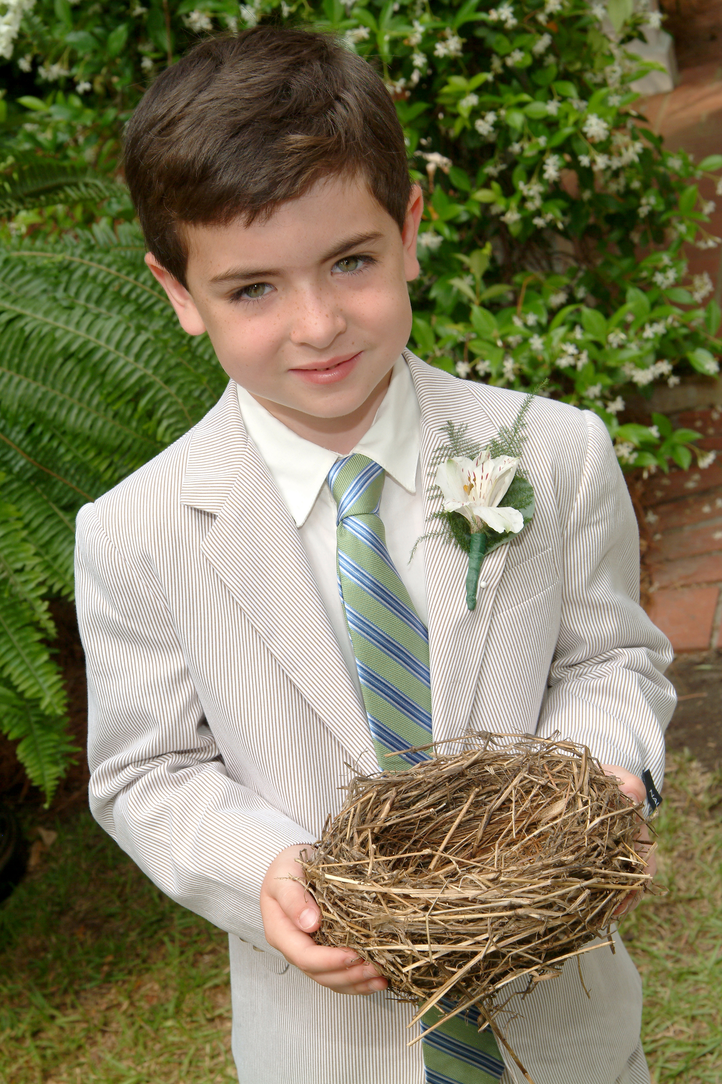 Matthew, my cousin/our ring bearer, carried a nest down the aisle when we got married. We found his nest in my grandparents’ yard. Nests always remind me of our wedding day!