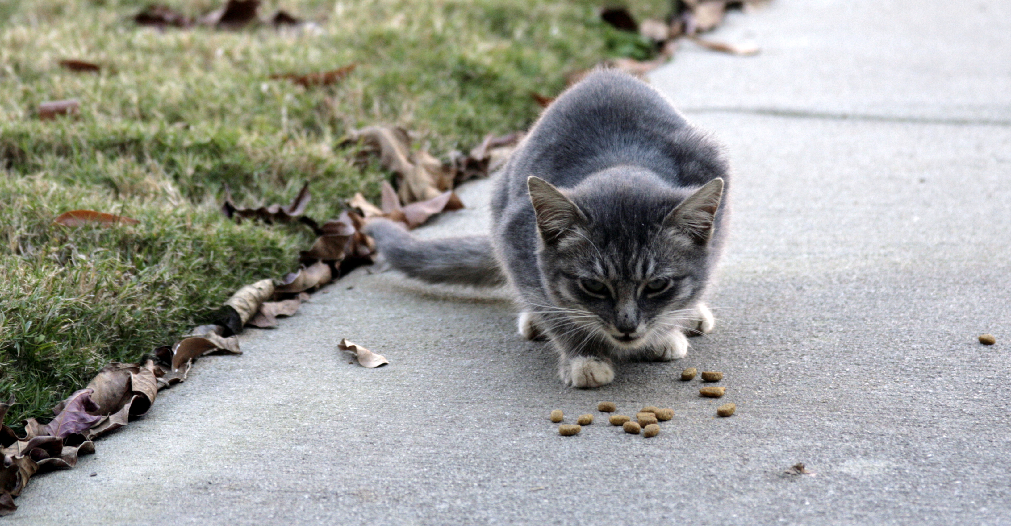 Yeah, I’ve been feeding him and yeah, I know that’s not the best idea. But he knows me. When he sees me get out of my car, he meows. He’s our adopted yard kitten.