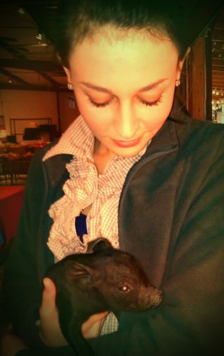 Last night, I held a baby pig. A three day old mule-footed hog, to be exact. A hoglet?