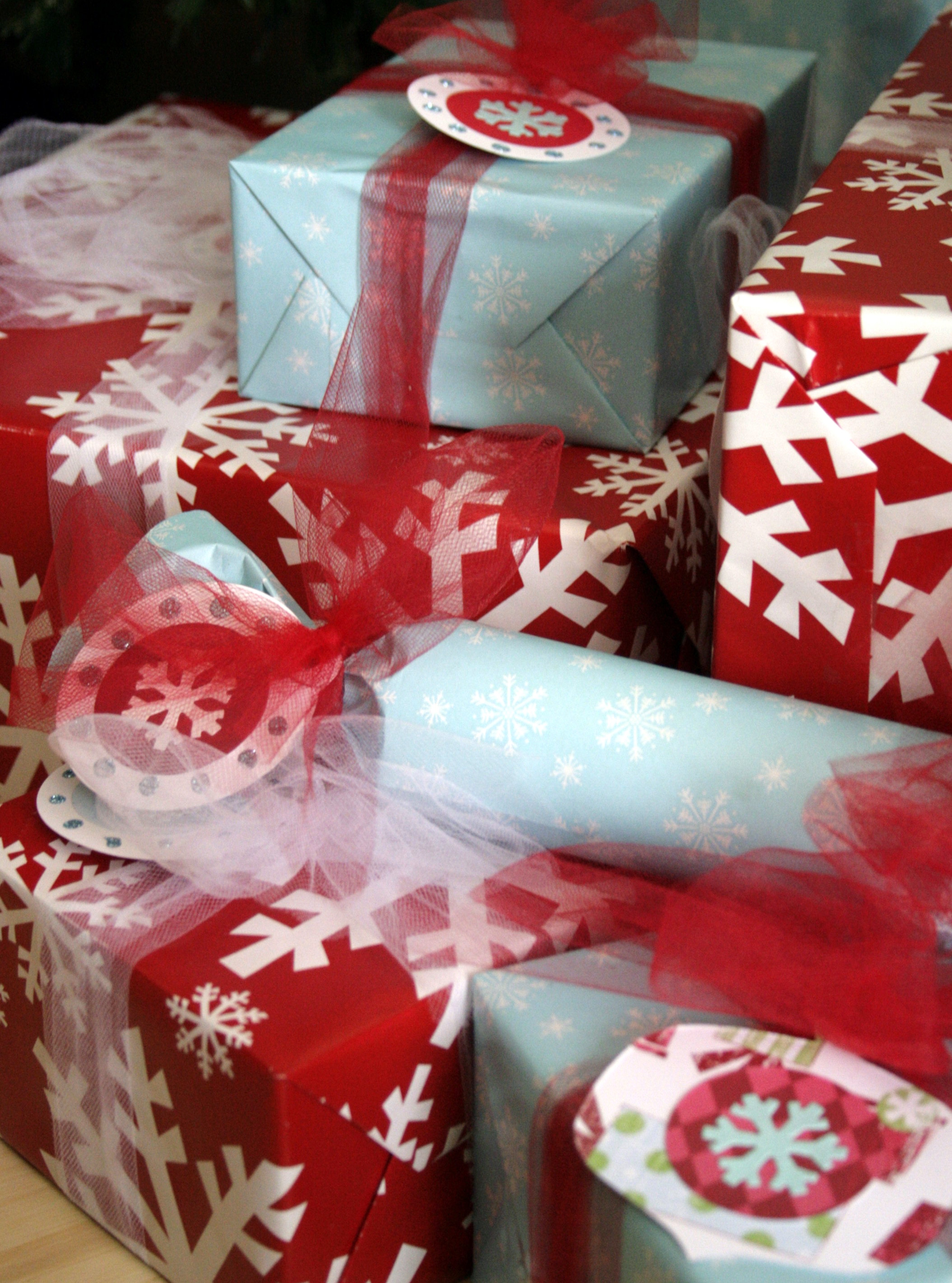 No chance of a white Christmas in South Carolina this year, but we DO have a snowflake thing going on with our wrapping this year.