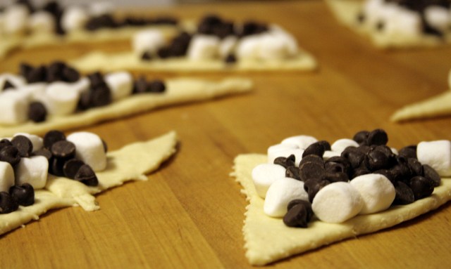 SO, I saw a funny recipe for s’mores made with crescent rolls on Pinterest the other day. Have you seen it? You just put chocolate chips and mini marshmallows into crescent rolls and bake! I’m not big on crescent rolls, but I DO love a s’more.